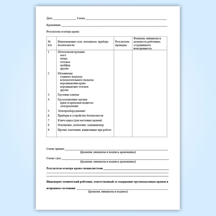 Вахтенный журнал крановщика (кранов мостового типа) в Тюмени купить