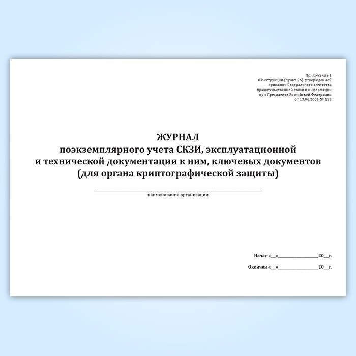 Журнал поэкземплярного учета СКЗИ, эксплуатационной и технической документации к ним, ключевых документов (для органа криптографической защиты) в Тюмени купить