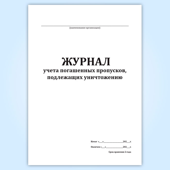 Журнал учета погашенных пропусков, подлежащих уничтожению в Тюмени купить