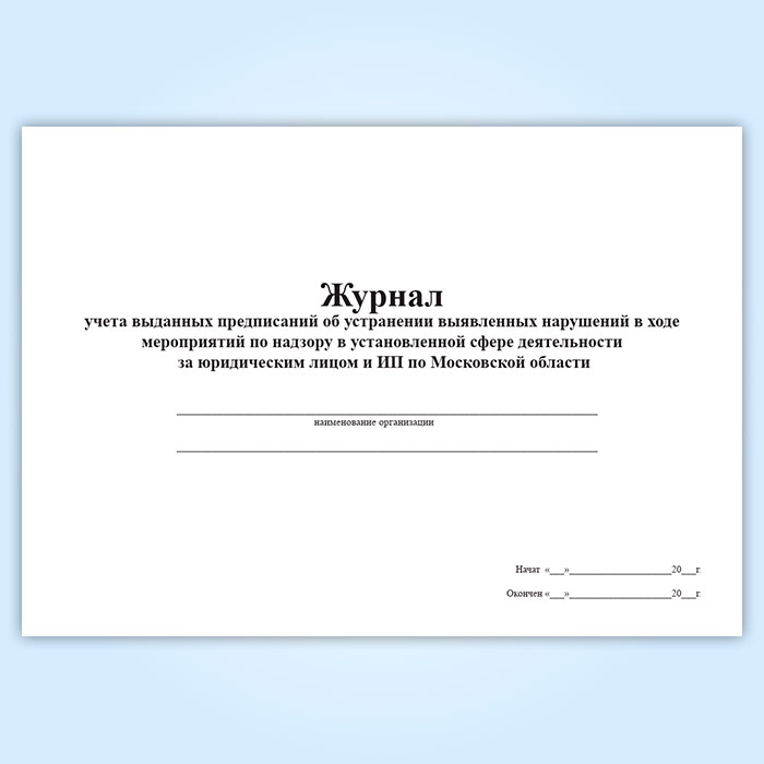 Журнал учета выданных предписаний об устранении выявленных нарушений в ходе мероприятий по надзору в установленной сфере деятельности за юридическим лицом и ИП по Московской области в Тюмени купить