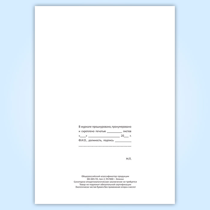 Вы получаете печатную продукцию прошнурованной и c местом для вашей печати в соответствии с действующими нормативными документами: