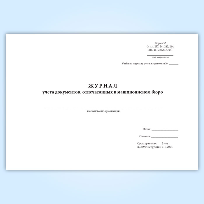 Журнал учета документов, отпечатанных в машинописном бюро (форма 32) в Тюмени купить