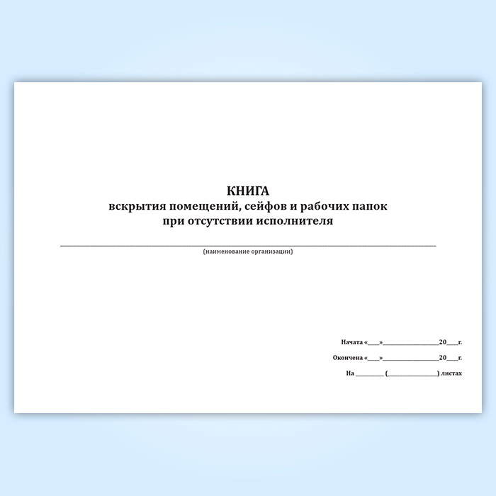 Книга вскрытия помещений, сейфов и рабочих папок при отсутствии исполнителя в Тюмени купить