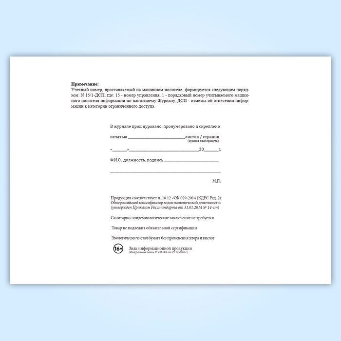 Вы получаете печатную продукцию прошнурованной и c местом для вашей печати в соответствии с действующими нормативными документами:
