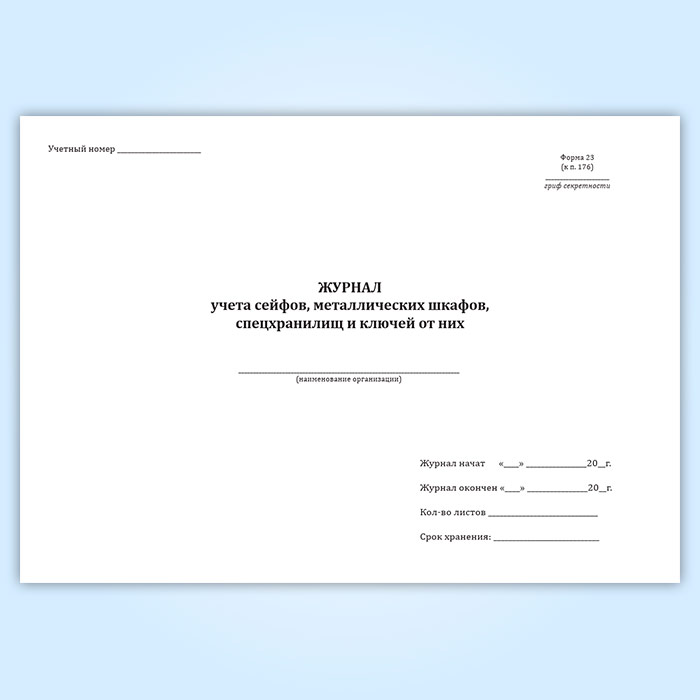 Журнал учета сейфов, металлических шкафов, спецхранилищ и ключей от них в Тюмени купить