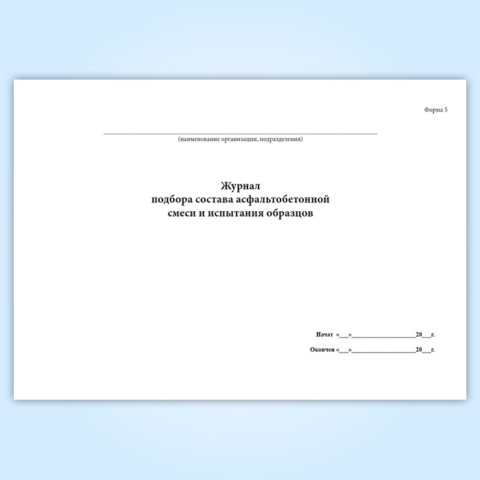 Журнал подбора состава асфальтобетонной смеси и испытания образцов в Тюмени купить