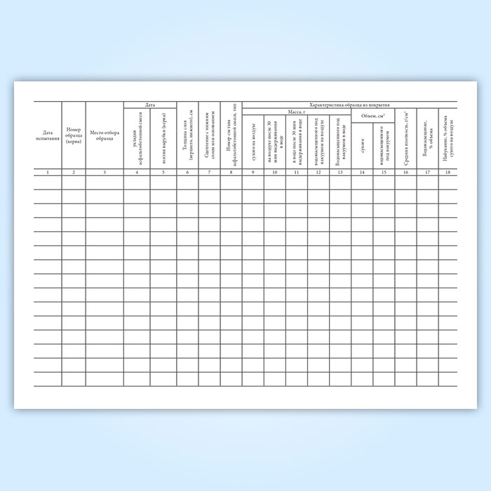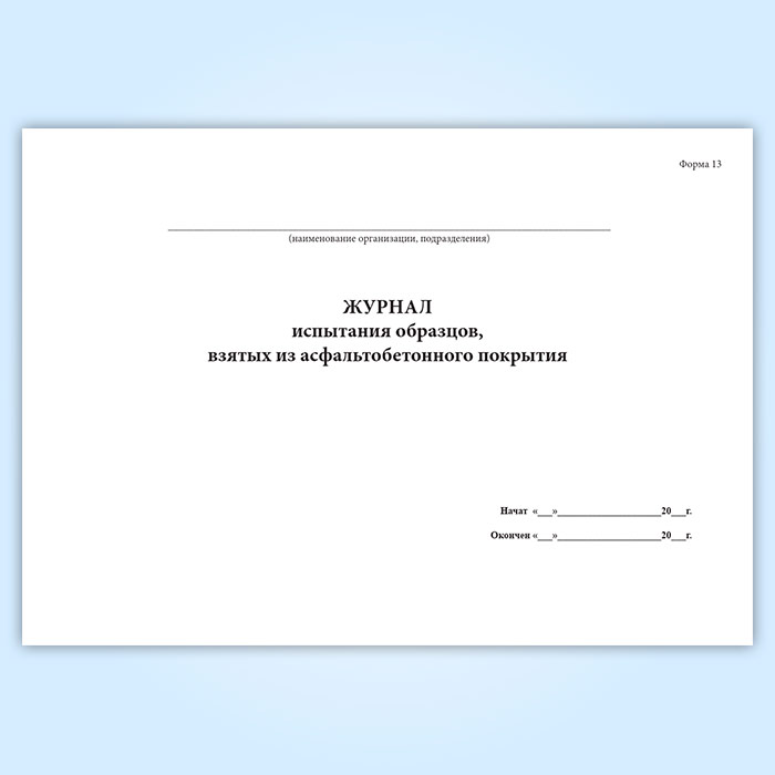 Журнал испытания образцов, взятых из асфальтобетонного покрытия (форма 13) в Тюмени купить