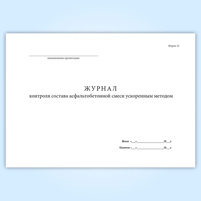 Журнал контроля состава асфальтобетонной смеси ускоренным методом (форма 12) в Тюмени купить
