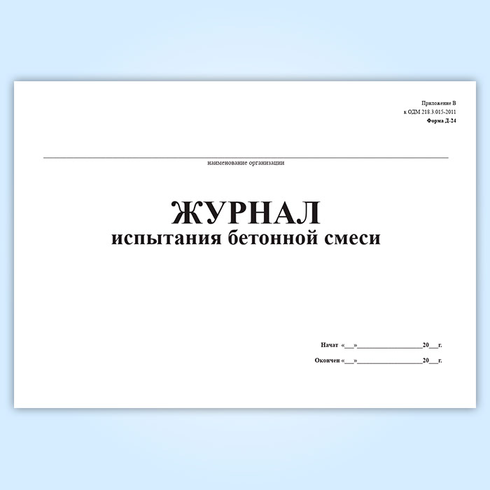 Журнал испытания бетонной смеси (форма № Д-24) в Тюмени купить
