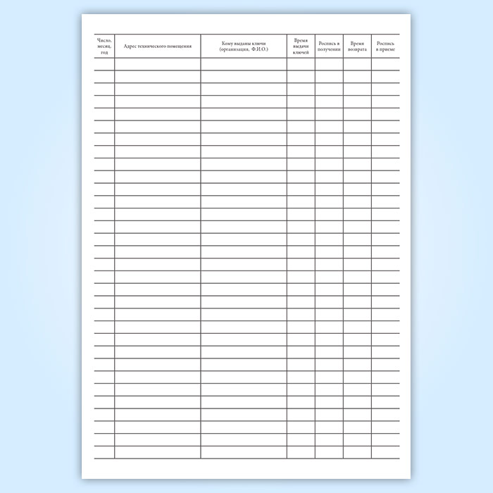 Журнал учета выдачи ключей от технических помещений, контролируемых ОДС в Тюмени купить