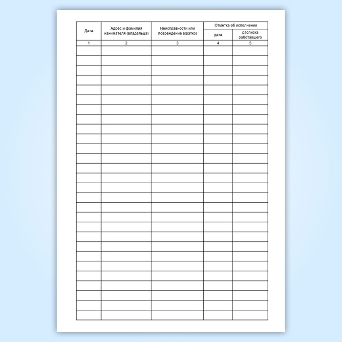 Журнал учета заявок населения на оперативное устранение неисправностей и повреждений инженерного оборудования в жилом доме (работы по домовой территории) в Тюмени купить