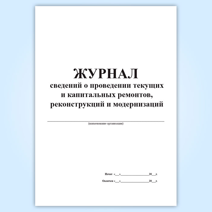Журнал сведений о проведении текущих и капитальных ремонтов, реконструкций и модернизаций в Тюмени купить