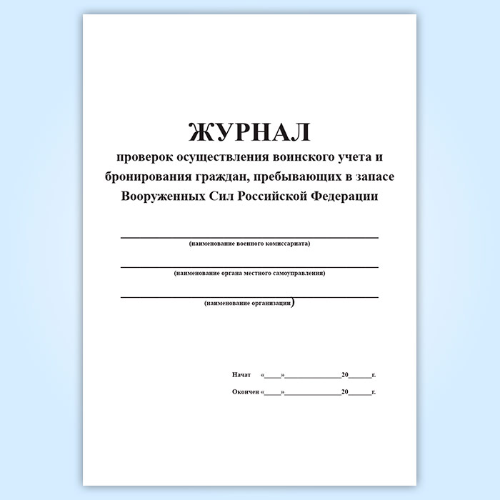 Журнал проверок осуществления воинского учета и бронирования граждан, пребывающих в запасе Вооруженных Сил Российской Федерации в Тюмени купить