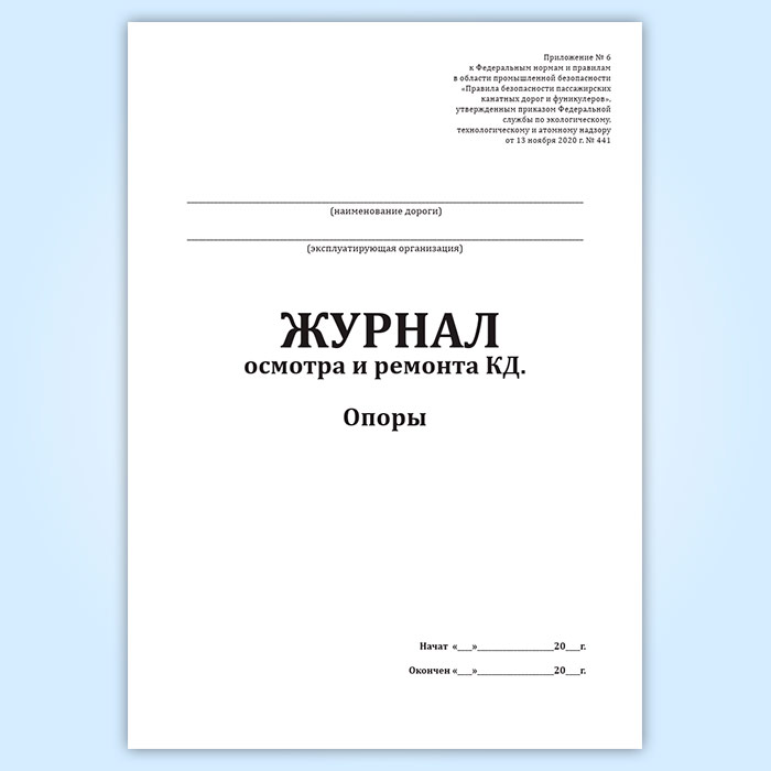 Журнал осмотра и ремонта канатной дороги. Опоры (форма № 6) в Тюмени купить