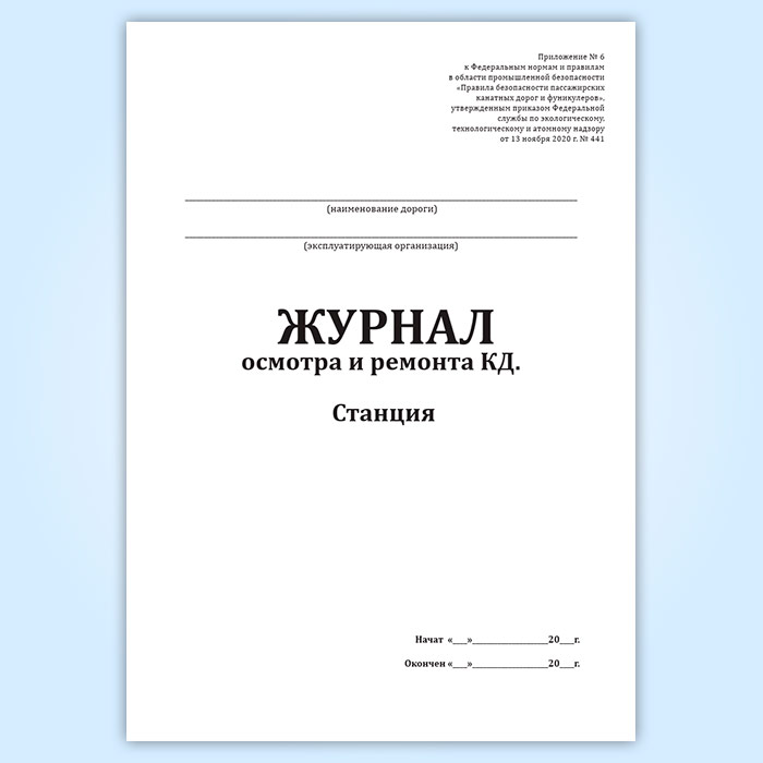 Журнал осмотра и ремонта канатной дороги. Станция (форма № 7) в Тюмени купить
