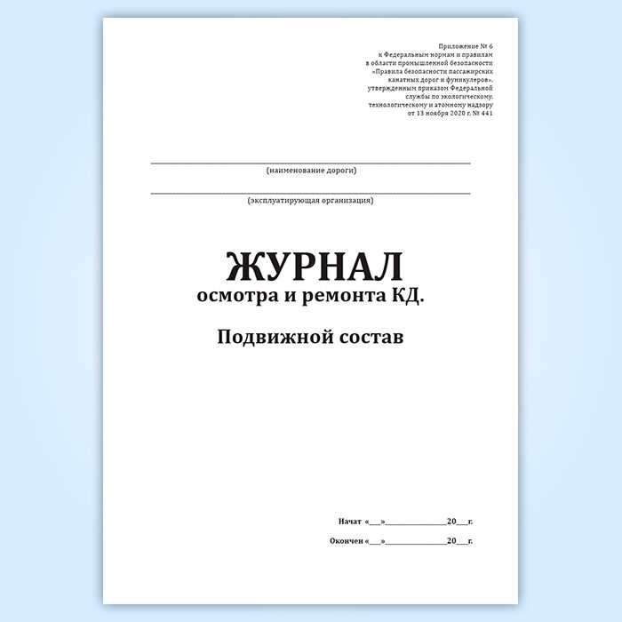 Журнал осмотра и ремонта канатной дороги. Подвижной состав (форма № 8) в Тюмени купить