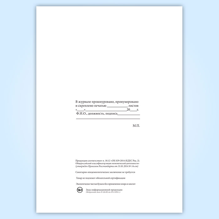 Вы получаете печатную продукцию прошнурованной и c местом для вашей печати в соответствии с действующими нормативными документами: