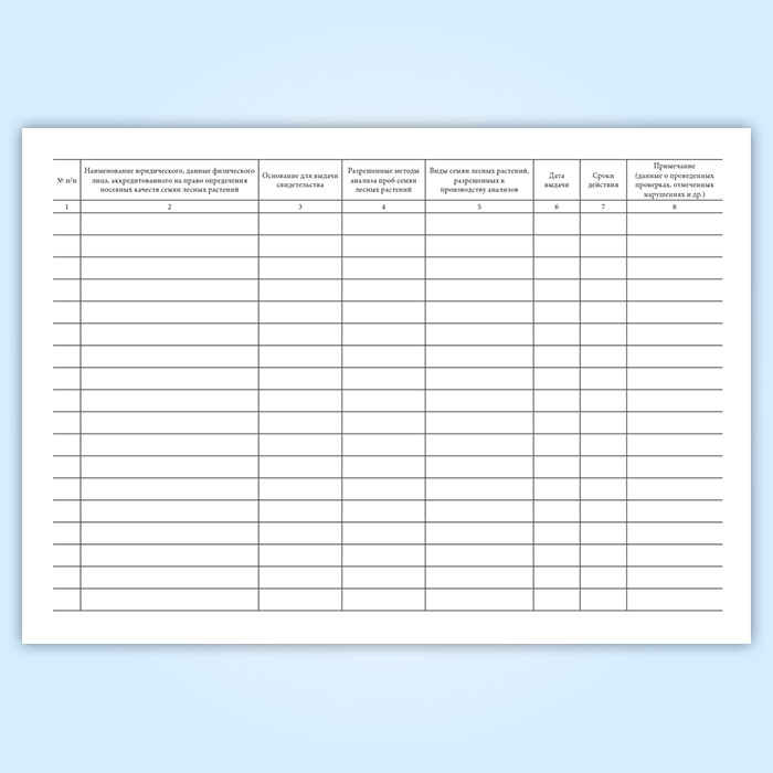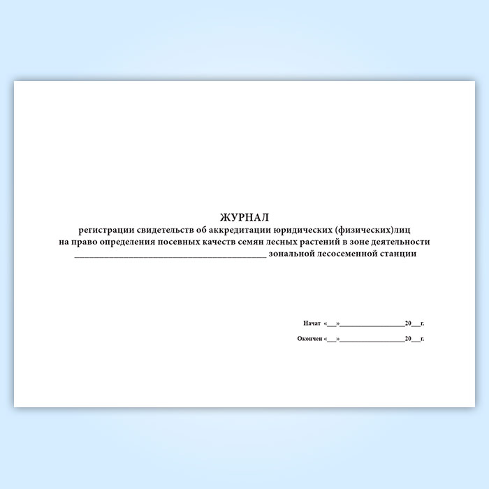 Журнал регистрации свидетельств об аккредитации юридических (физических) лиц на право определения посевных качеств семян лесных растений в зоне деятельности зональной лесосеменной станции в Тюмени купить