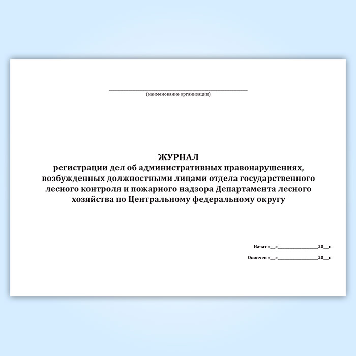Журнал регистрации дел об административных правонарушениях, возбужденных должностными лицами отдела государственного лесного контроля и пожарного надзора Департамента лесного хозяйства по Центральному федеральному округу в Тюмени купить
