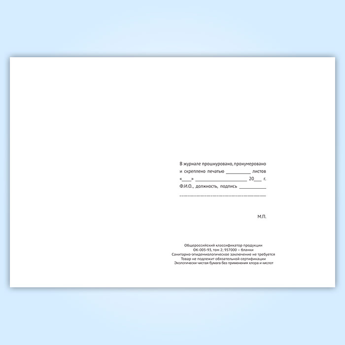 Вы получаете печатную продукцию прошнурованной и c местом для вашей печати в соответствии с действующими нормативными документами: