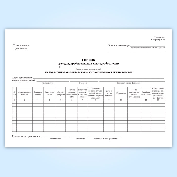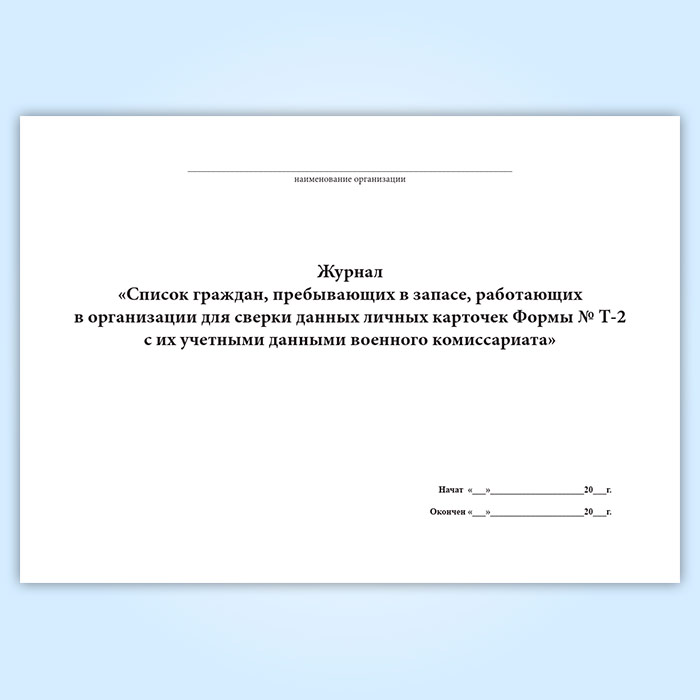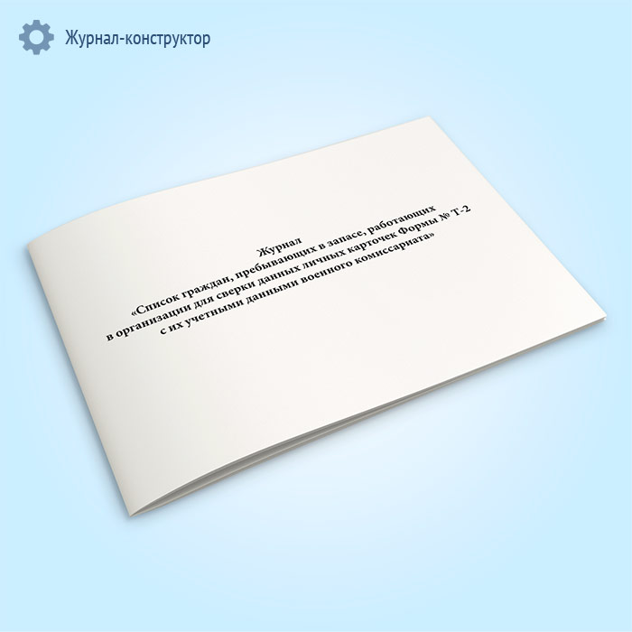 Журнал «Список граждан, пребывающих в запасе, работающих в организации для сверки данных личных карточек Формы № Т-2 с их учетными данными военного комиссариата» в Тюмени купить