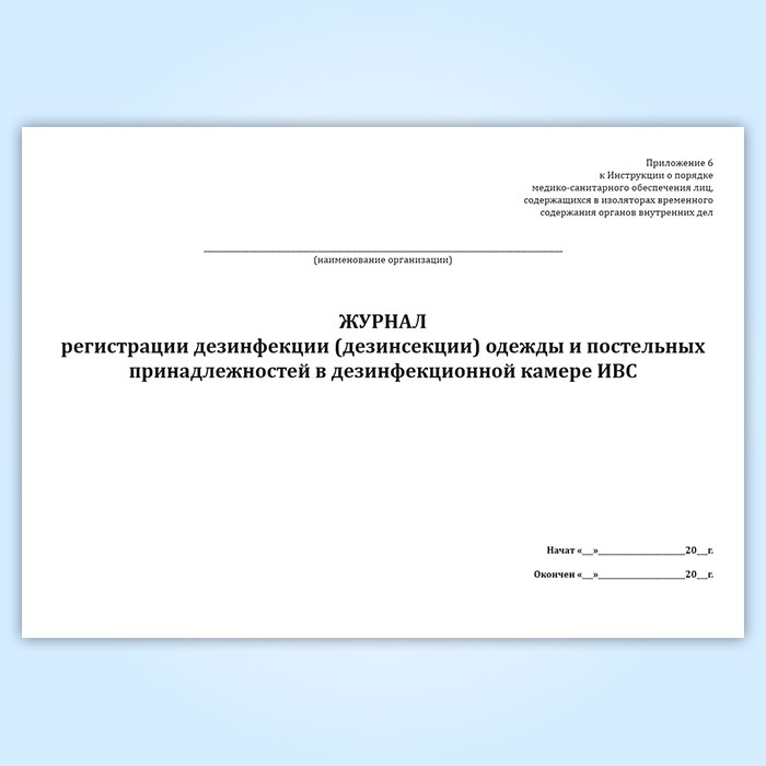 Журнал регистрации дезинфекции (дезинсекции) одежды и постельных принадлежностей в дезинфекционной камере ИВС в Тюмени купить