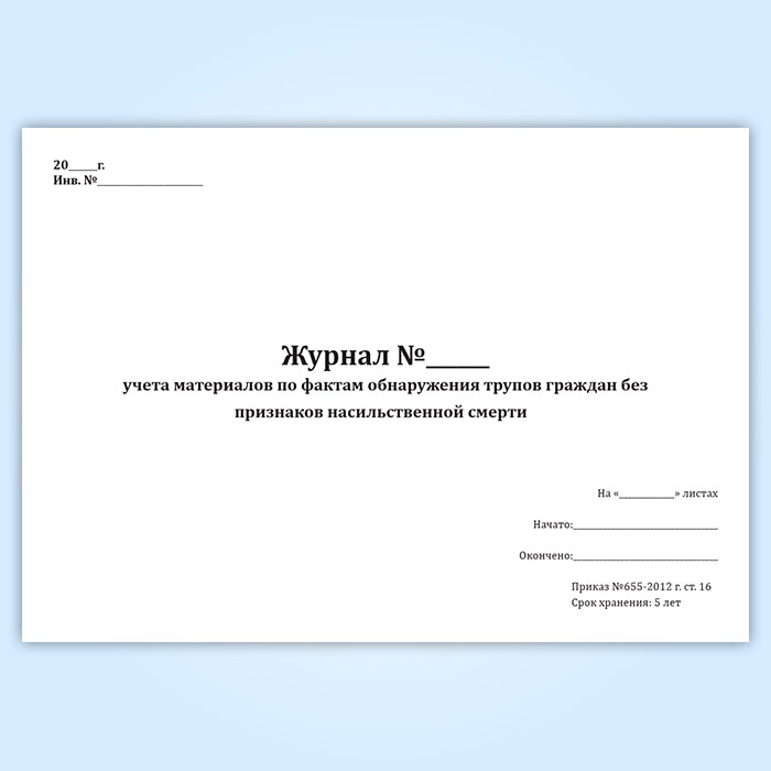 Журнал учета материалов по фактам обнаружения трупов граждан без признаков насильственной смерти в Тюмени купить