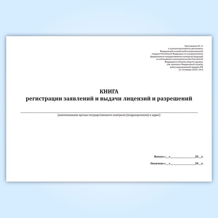 Книга регистрации заявлений и выдачи лицензий и разрешений (Приказ Росгвардии от 14.01.2020 N 8) в Тюмени купить