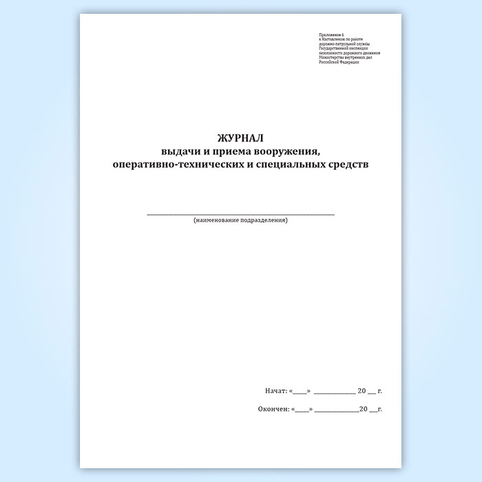 Журнал выдачи и приема вооружения, оперативно-технических и специальных средств в Тюмени купить