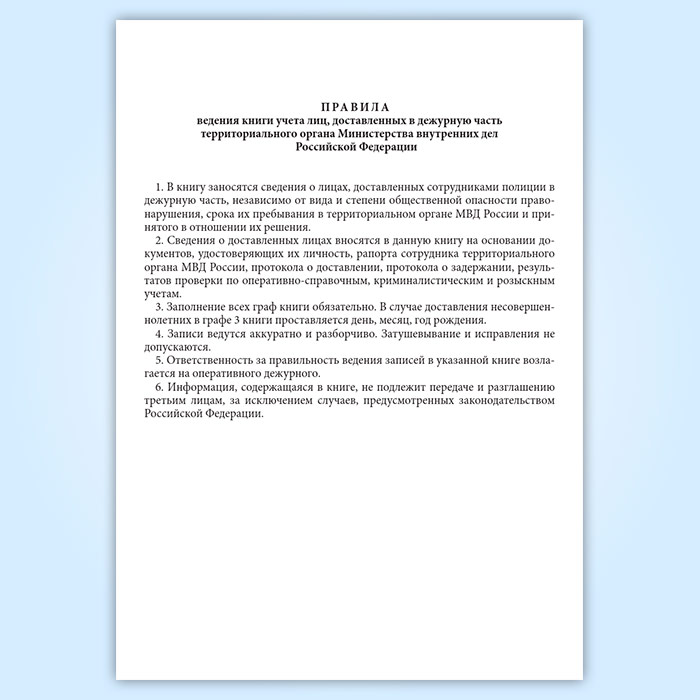 Книга учета лиц, доставленных в дежурную часть территориального органа МВД РФ в Тюмени купить