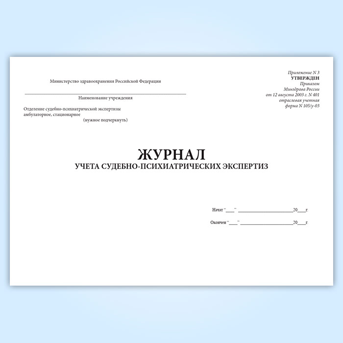 Журнал учета судебно-психиатрических экспертиз (форма 105/у-03) в Тюмени купить