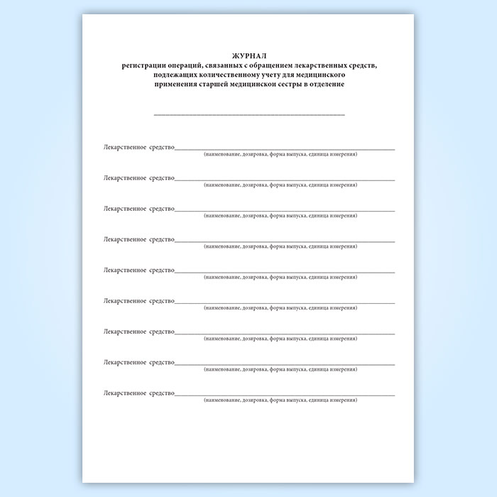 Журнал регистрации операций, связанных с обращением лекарственных средств, подлежащих количественному учету для медицинского применения старшей медицинской сестры в отделение в Тюмени купить