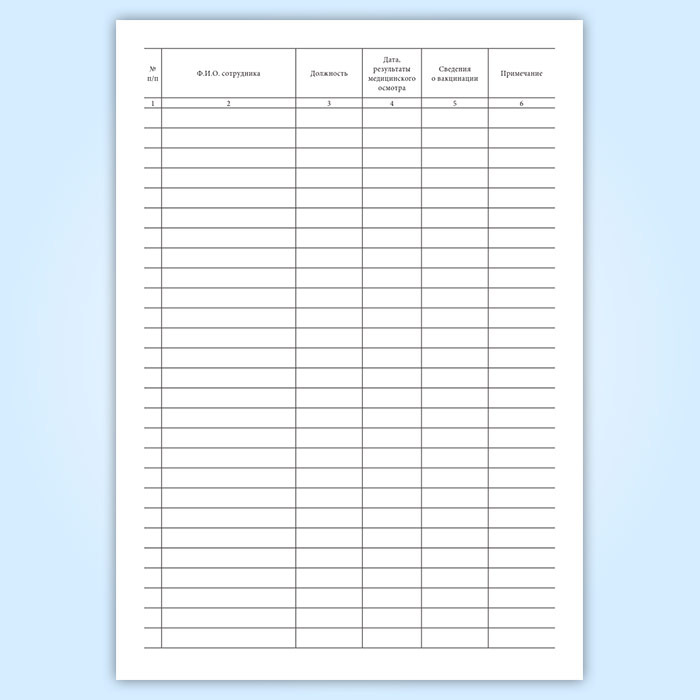 Журнал регистрации результатов медицинских осмотров и иммунизации сотрудников в Тюмени купить