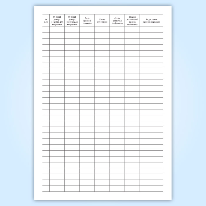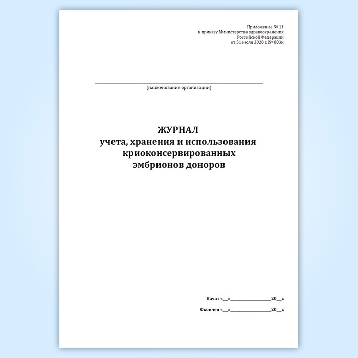 Журнал учета, хранения и использования криоконсервированных эмбрионов доноров в Тюмени купить