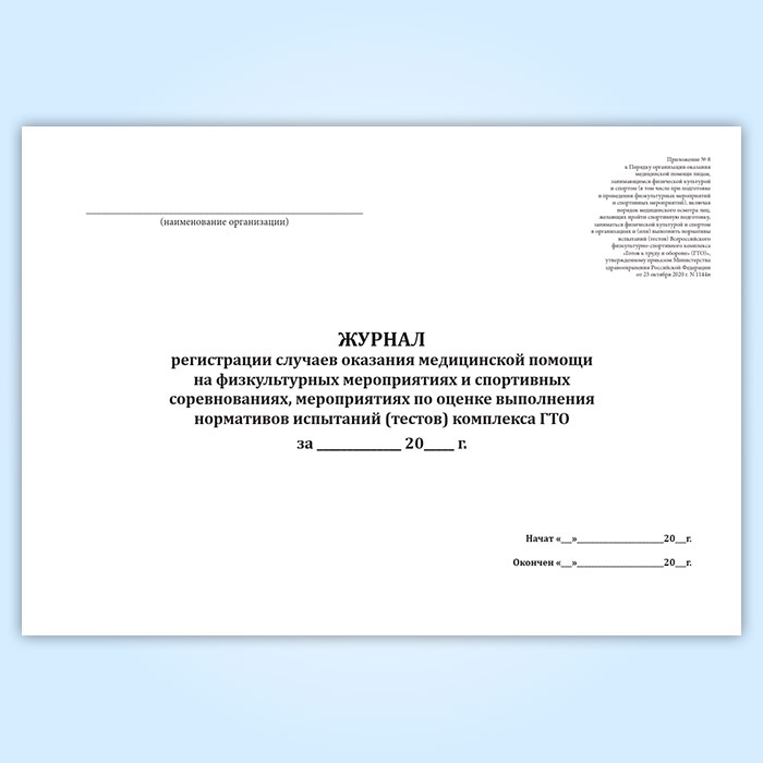 Журнал регистрации случаев оказания медицинской помощи на физкультурных мероприятиях и спортивных соревнованиях, мероприятиях по оценке выполнения нормативов испытаний (тестов) комплекса ГТО в Тюмени купить