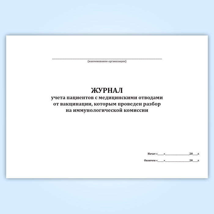 Журнал учета пациентов с медицинскими отводами от вакцинации, которым проведен разбор на иммунологической комиссии в Тюмени купить