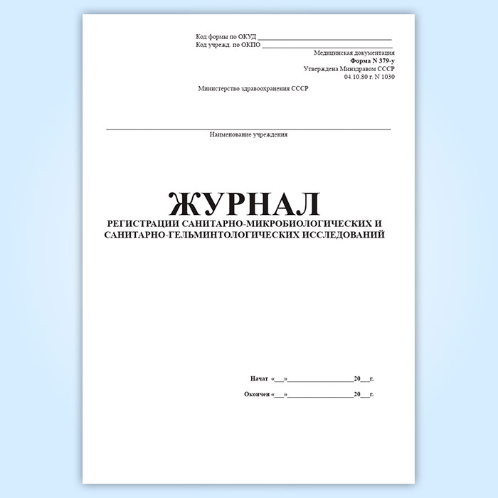 Журнал регистрации санитарно-микробиологических и санитарно-гельминтологических исследований (форма 379-у) в Тюмени купить