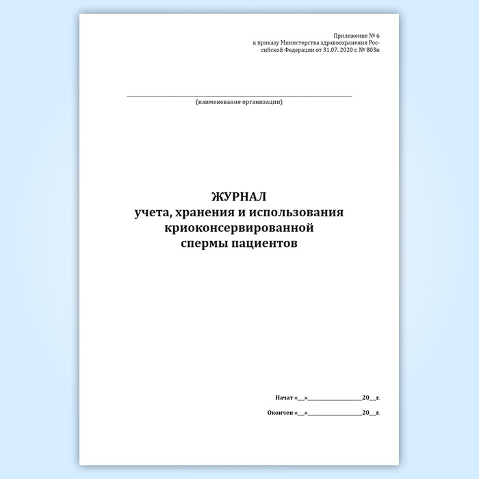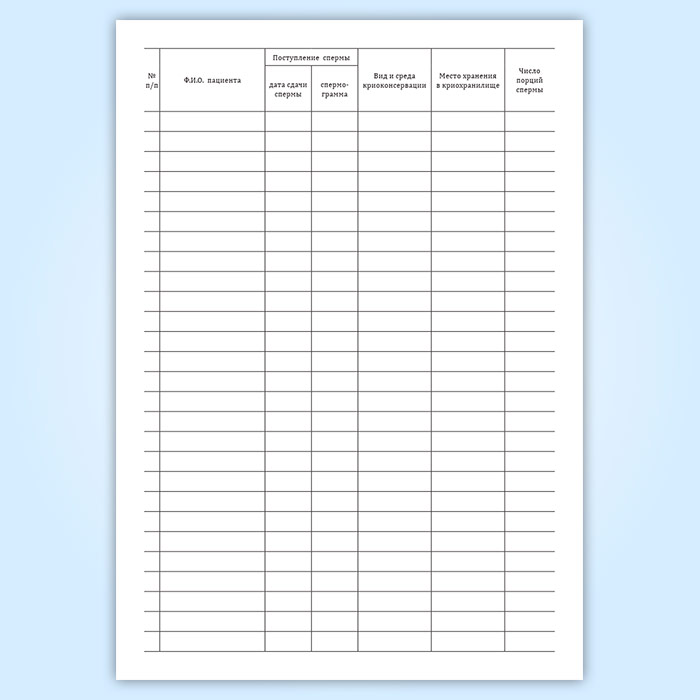 Журнал учета, хранения и использования криоконсервированной спермы пациентов в Тюмени купить