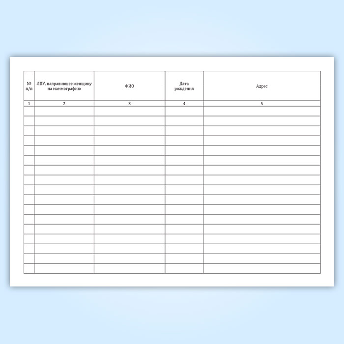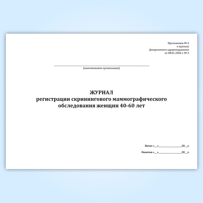 Журнал регистрации скринингового маммографического обследования женщин 40-60 лет в Тюмени купить