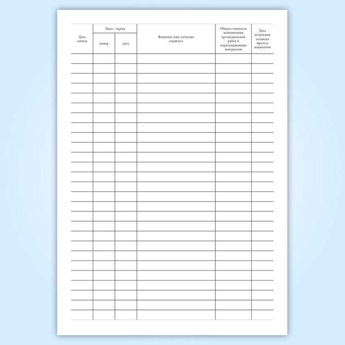 Книга учета расчетов с пациентами по заказ-нарядам на изготовление зубных протезов (форма 16-МЗ) в Тюмени купить