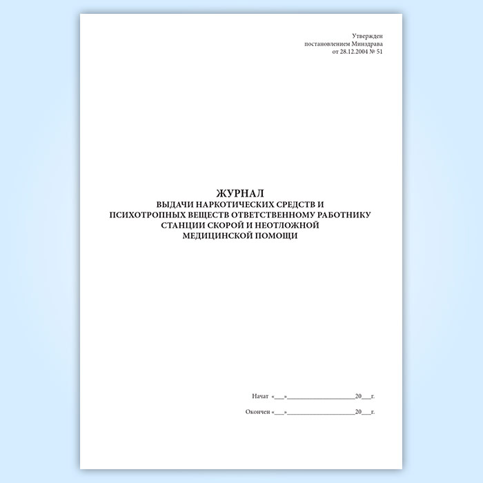 Журнал выдачи наркотических средств и психотропных веществ ответственному работнику станции скорой и неотложной медицинской помощи в Тюмени купить
