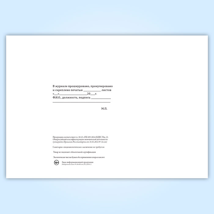 Вы получаете печатную продукцию прошнурованной и c местом для вашей печати в соответствии с действующими нормативными документами: