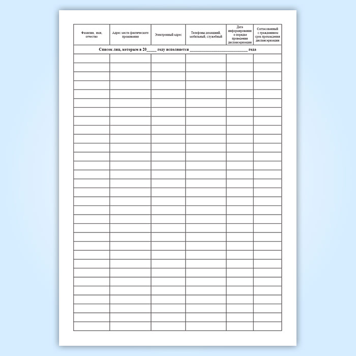 Поименный и повозрастной список граждан терапевтического, в том числе цехового, участка (участка врача общей практики (семейного врача)) в Тюмени купить