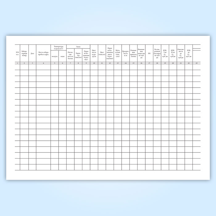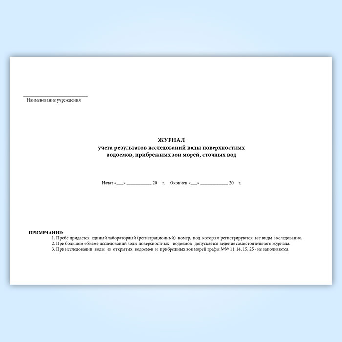 Журнал учета результатов исследований воды поверхностных водоемов, прибрежных зон морей, сточных вод (форма № 324-у) в Тюмени купить