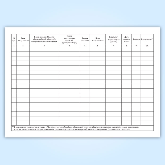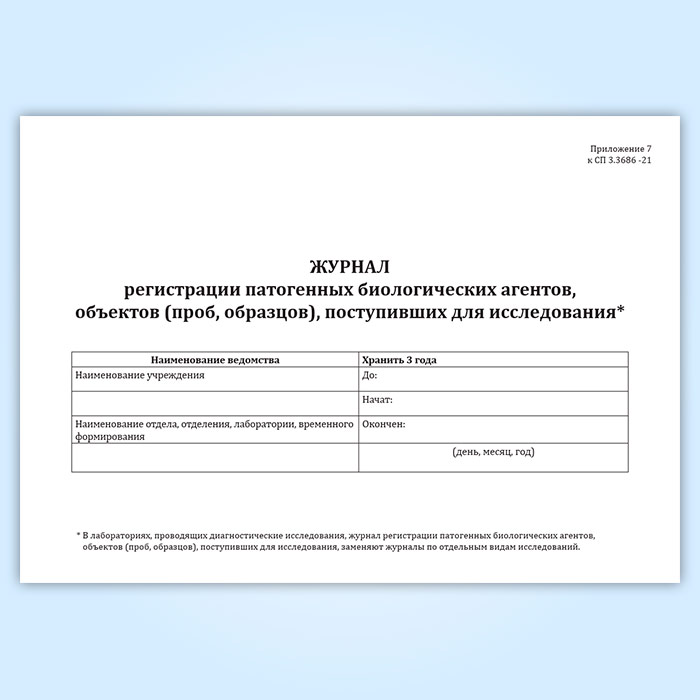 Журнал регистрации патогенных биологических агентов, объектов (проб, образцов), поступивших для исследования в Тюмени купить