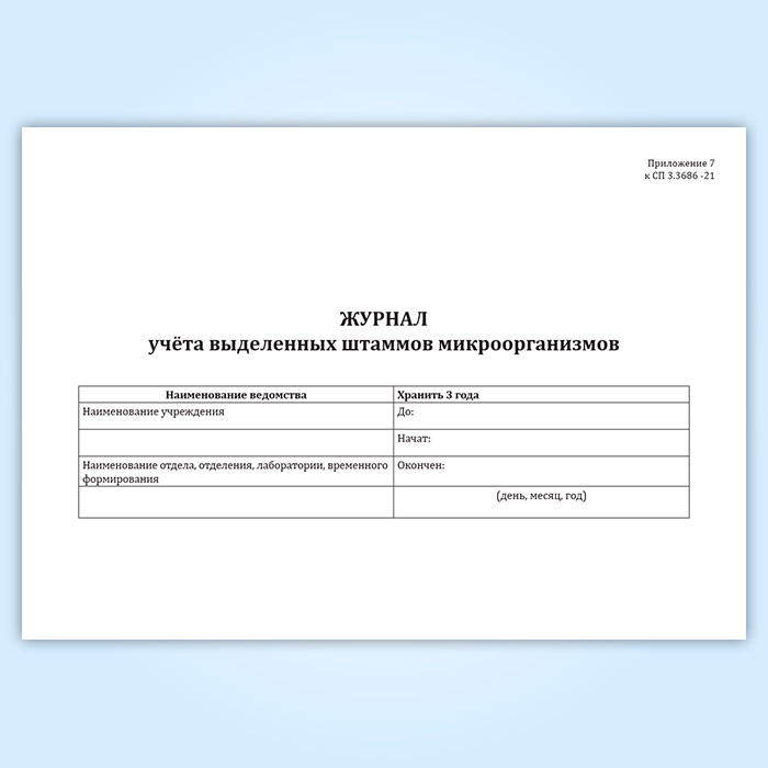 Журнал учета выделенных штаммов микроорганизмов (СанПиН 3.3686-21) в Тюмени купить
