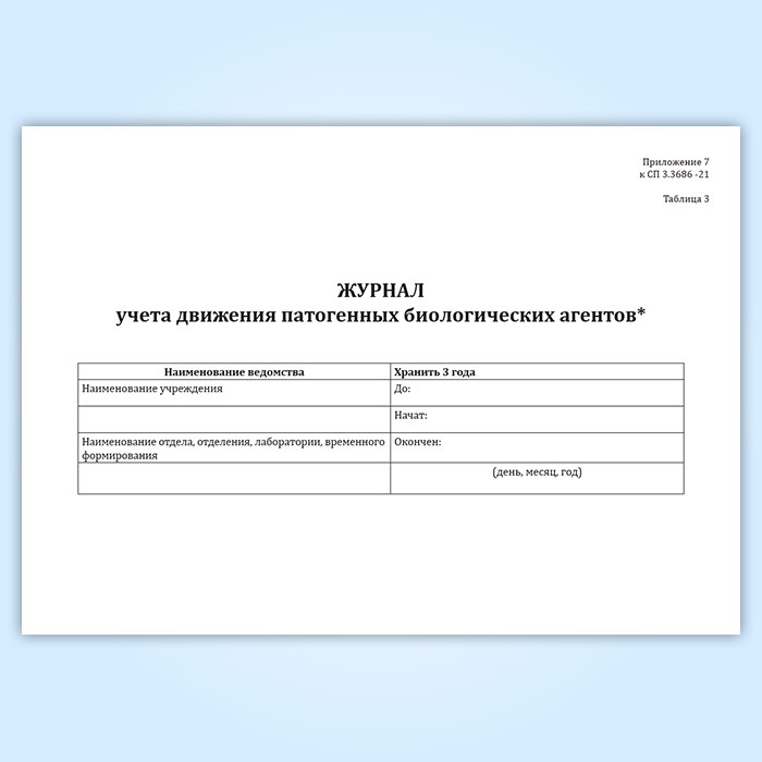 Журнал учета движения патогенных биологических агентов (СанПиН 3.3686-21) в Тюмени купить