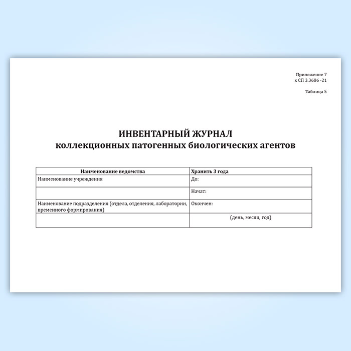 Инвентарный журнал коллекционных патогенных биологических агентов (СанПиН 3.3686-21) в Тюмени купить