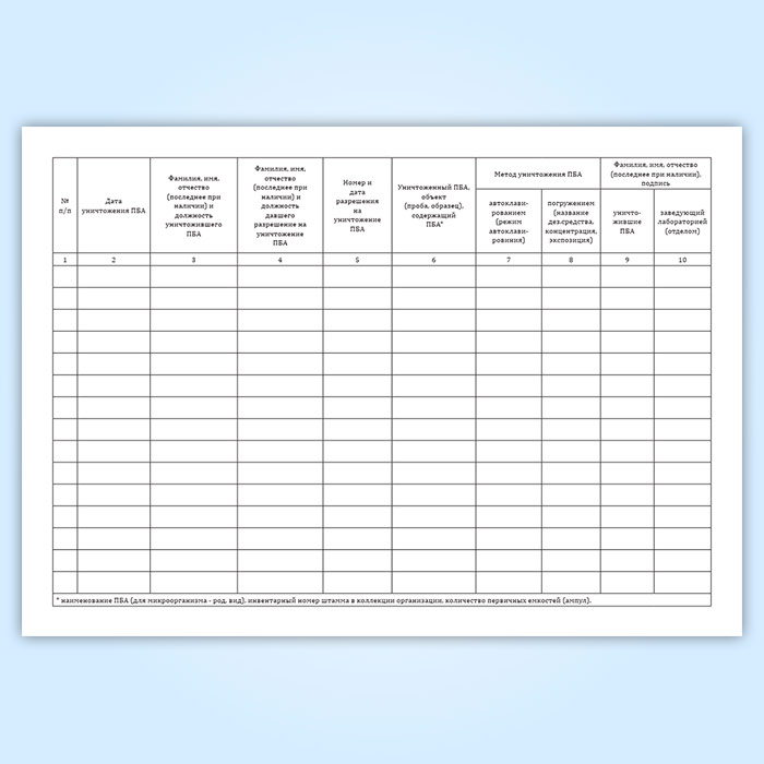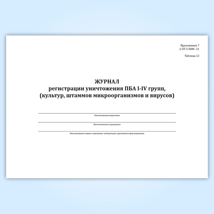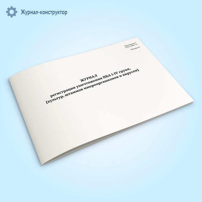 Журнал регистрации уничтожения ПБА I-IV групп, (культур, штаммов микроорганизмов и вирусов) в Тюмени купить