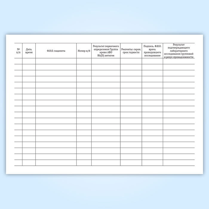 Журнал регистрации первичного определения группы крови в Тюмени купить